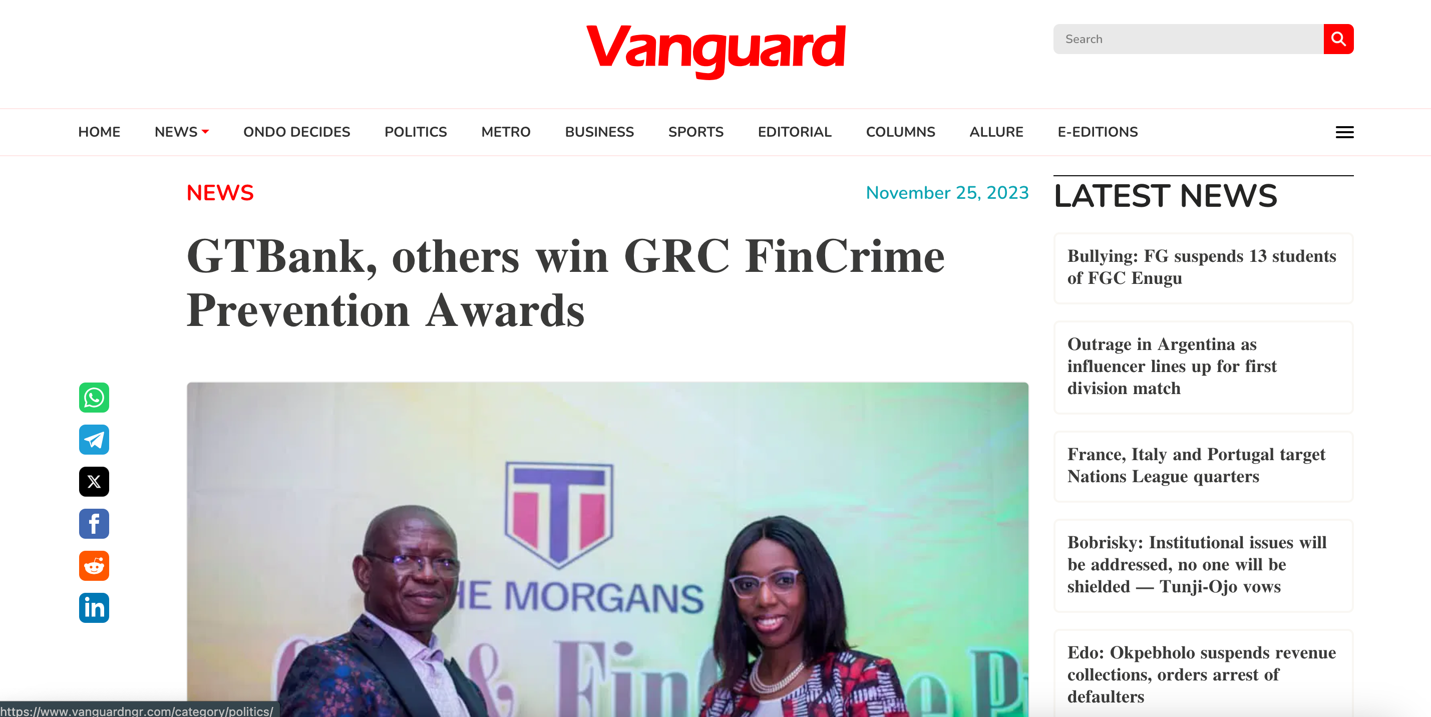 https://www.vanguardngr.com/2023/11/gtbank-others-win-grc-fincrime-prevention-awards/